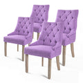 La Bella 4 Set French Provincial Dining Chair Amour Oak Fabric Studs Retro - Violet