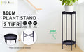 La Bella 80cm Black Plant Stand Planter Shelf Rack 2 Tier Steel
