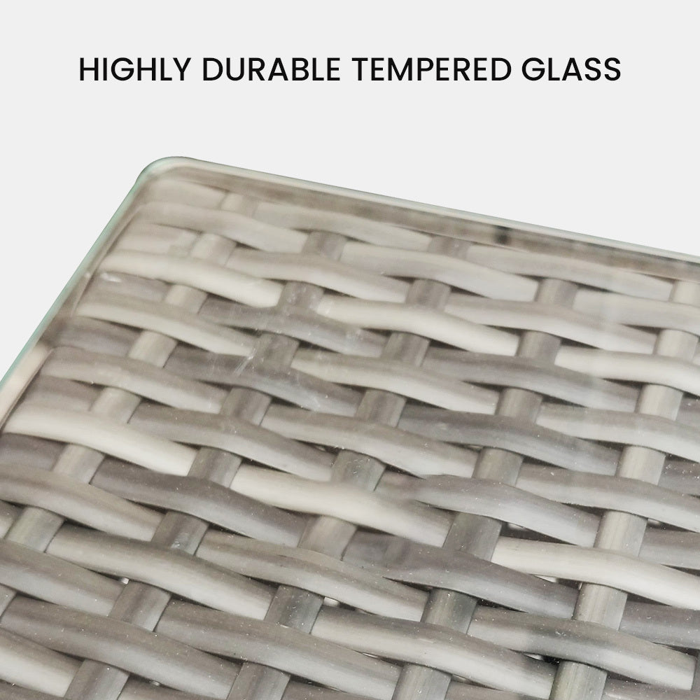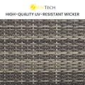 The coffee table includes a tempered glass table top. The high-quality UV-resistant handwoven Suntech wicker in Marl Grey weave has a premium natural textured look. Mix and match with other London Rattan modular pieces to create your own custom outdoor setting. You can set it up in whatever configuration works best for you, making this London Rattan outdoor ottoman a great addition to any outdoor space.