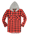 Mens Cotton Flannelette Shirt w Jersey Hood Long Sleeve Flannel - Red/Black - L