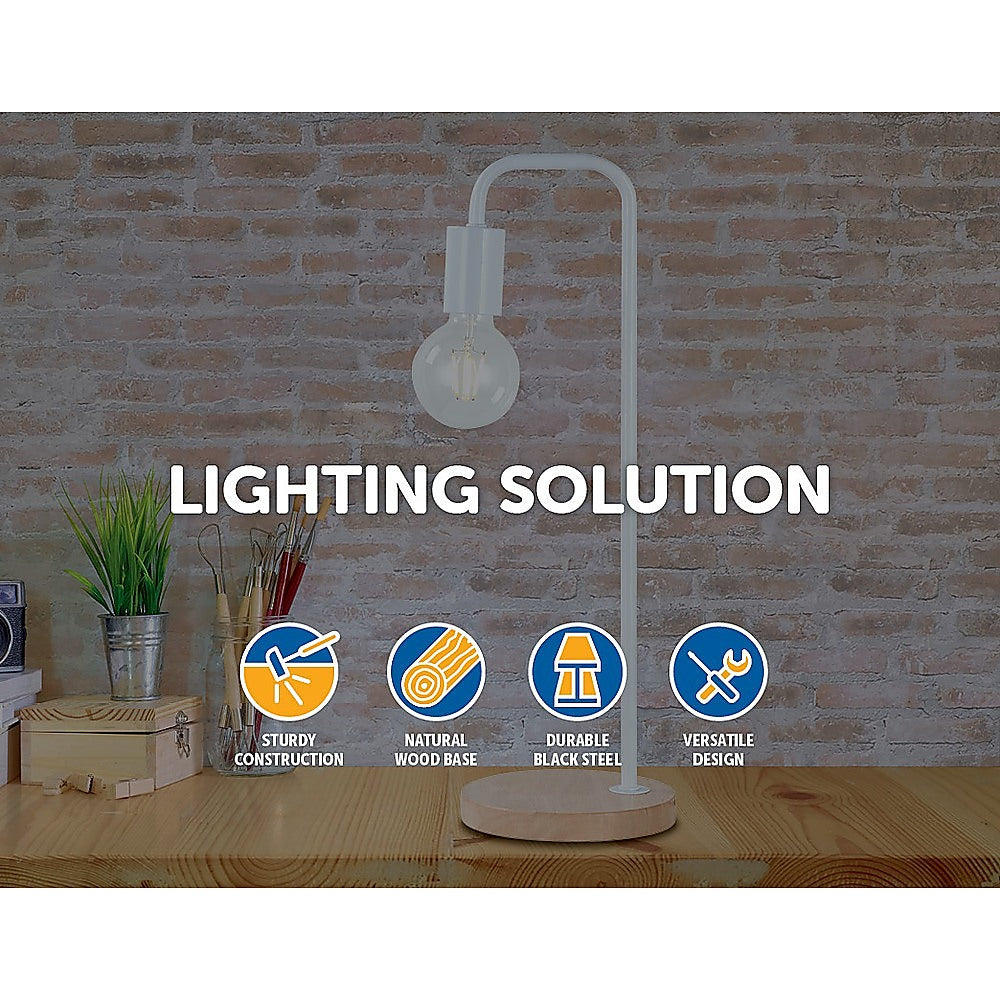 Modern Table lamp Desk Light Timber Base Bedside Bedroom White