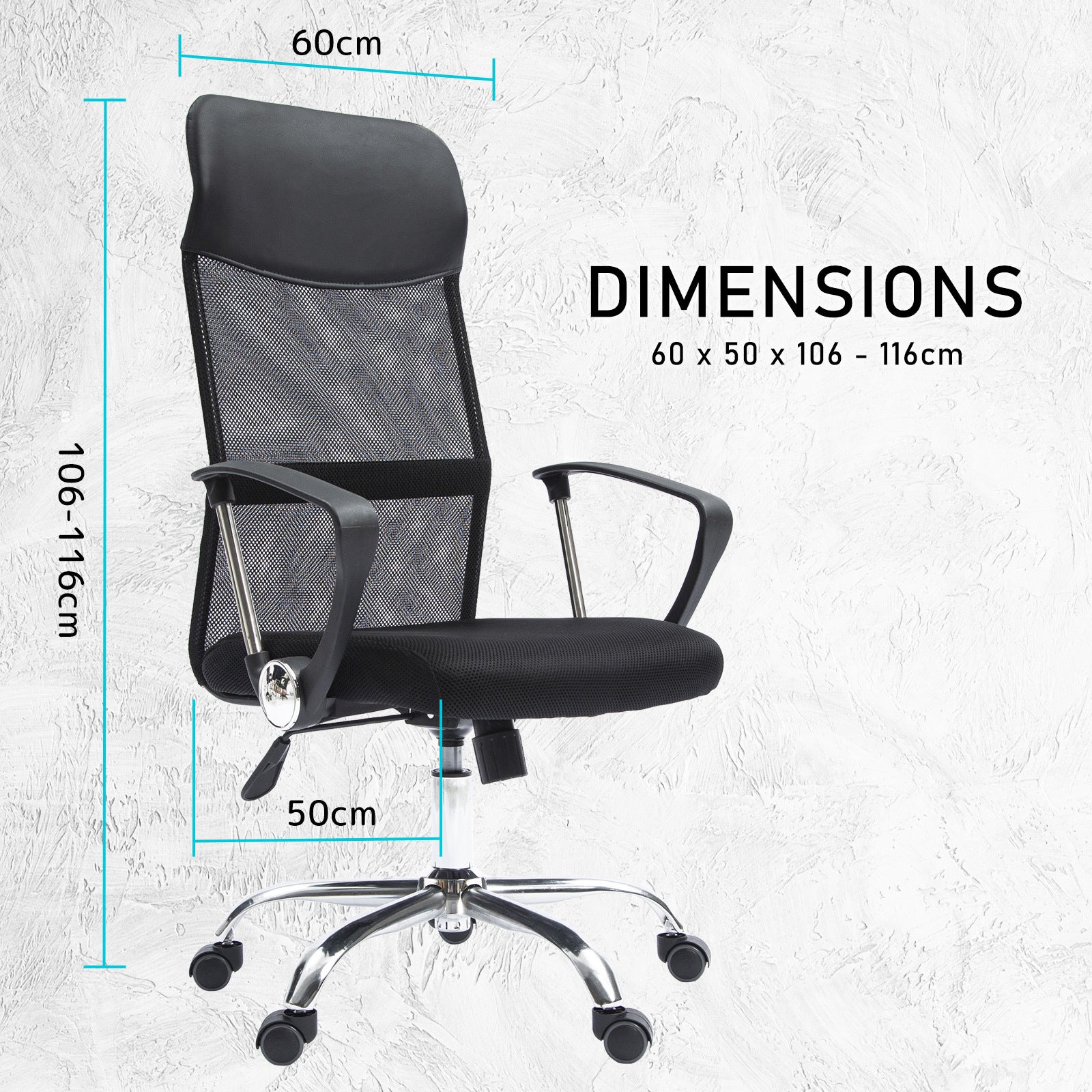 Office Chair Mesh High Back In-Built Lumbar BREEZE BLACK