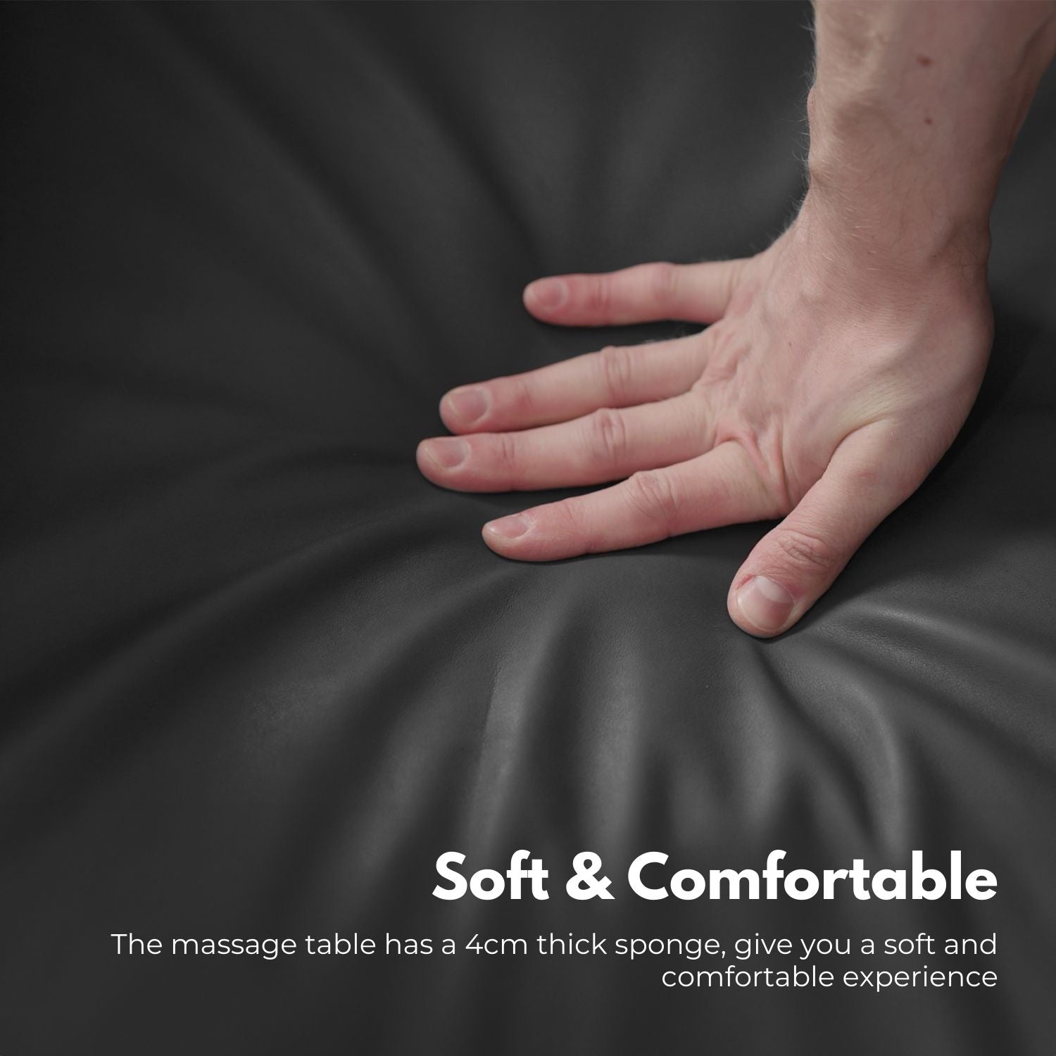 Soft & Comfortable & Strong: The massage table has a 4cm thick sponge, give you a soft and comfortable experience. The massage table made of highest quality aluminum alloy for superior strength to enable up to 225KG on the spa table.