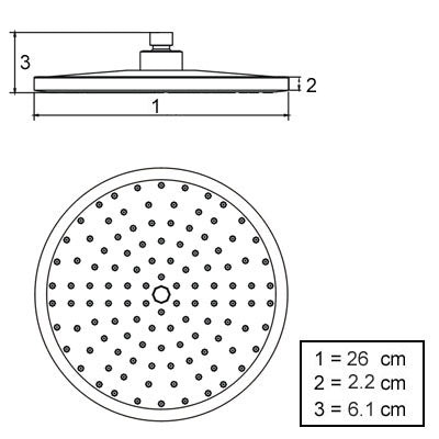 Overhead Rain Shower Head - 260mm Circular Large Chromed