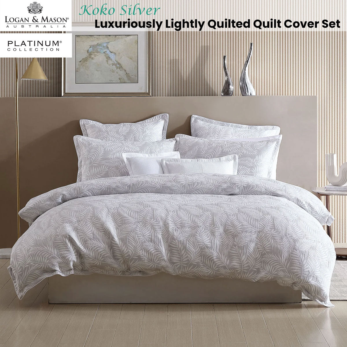 Koko Silver Lightly Quilted Jacquard Quilt Cover Set by Platinum Collection, in a striking silver and white colourway, invites you to a tropical paradise. The cover is luxuriously quilted for downy-soft texture.