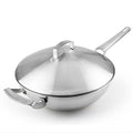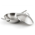 Professional 12 Inch 32cm Three-Layer 304Stainless Steel Chef's Pan Wok with Lid