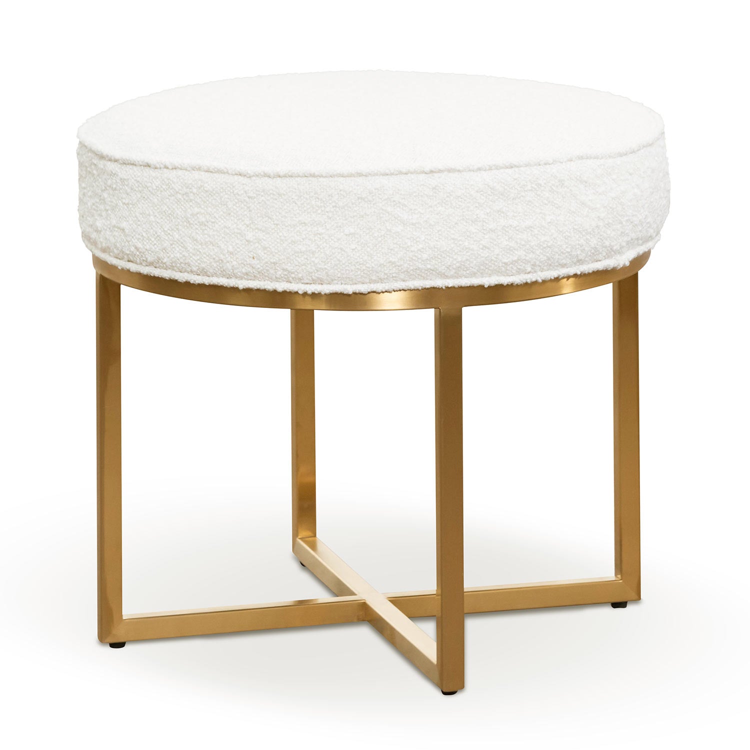 Quinn Ivory White Boucle Ottoman - Brushed Gold Base