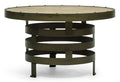 The Retro Style Spiral Round Coffee Table with Wood Top is an extremely creative way of introducing a Modern Industrial look to your interior space. Beautifully designed, the spiral structure complements the studded Round Solid Wood Top and creates a pleasing Vintage Modern piece. An extremely sturdy item, this Coffee Table promises a lasting quality.