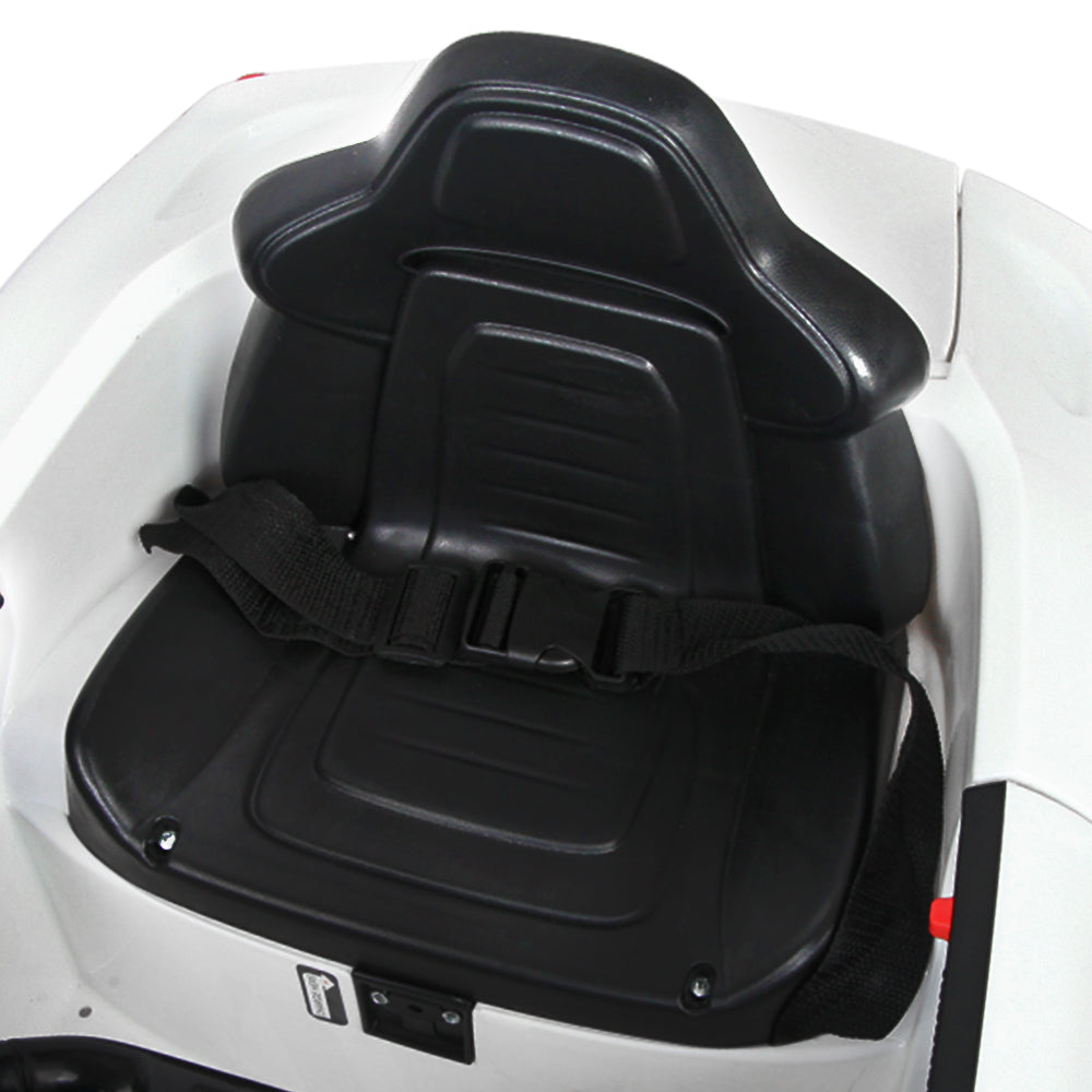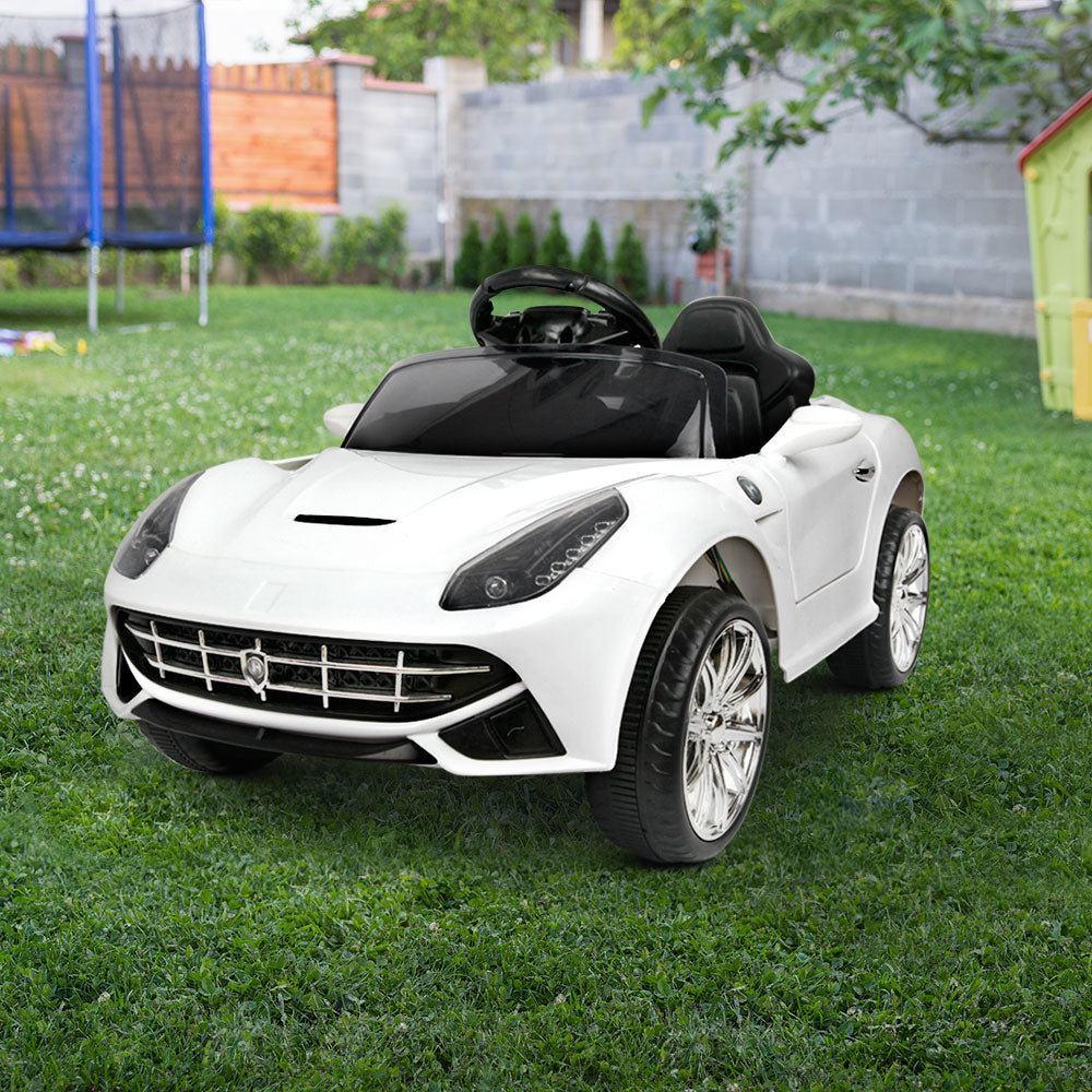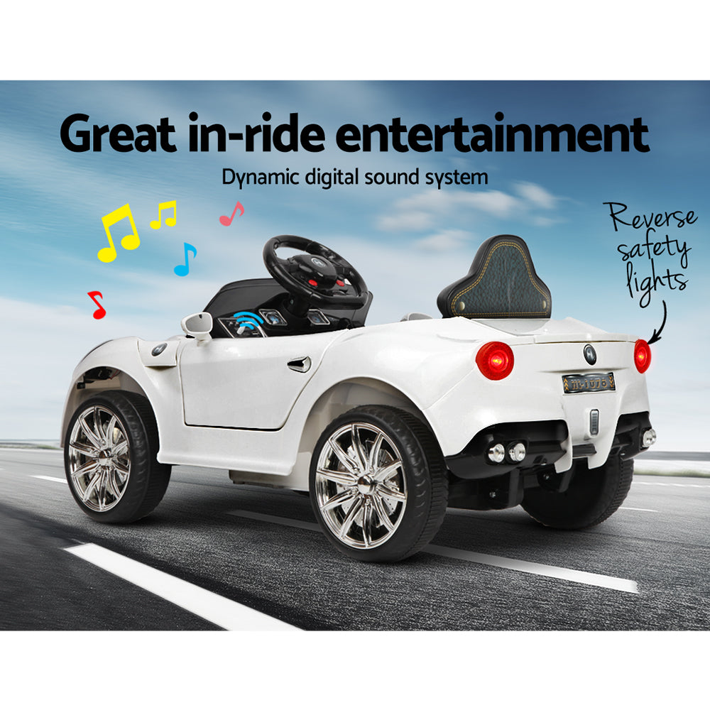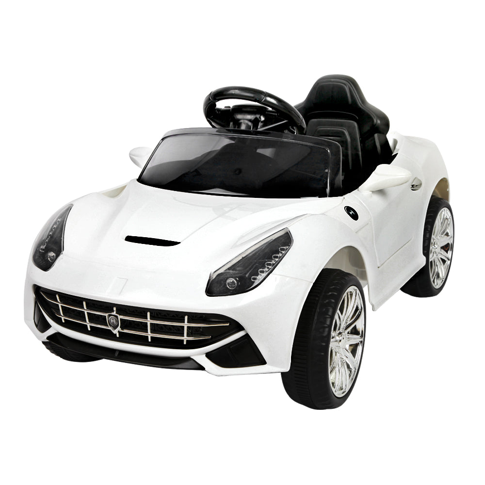 Well, those incredible technology and engineering wouldn’t be found in our F12 Inspired Kids Ride On Car. But then you’ll be glad to know that some of its progressive styling of space-age angles and aerodynamic channels are fully evident with our Kids version of the F12. The swooping lines, stylish bonnet vent and large headlights give our Ride a dynamic stance from any angle. The stunning lacquer finish in Pearl White is absolutely scintillating.