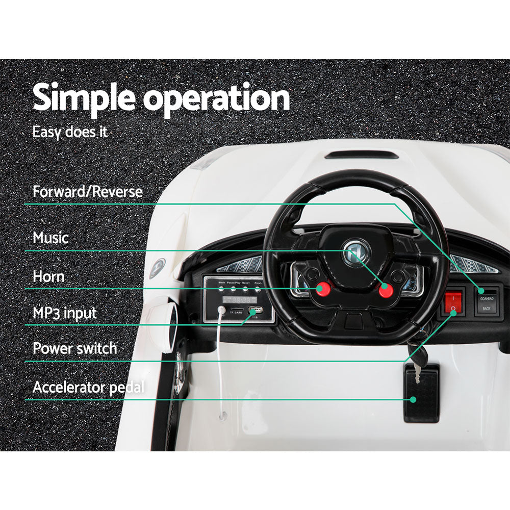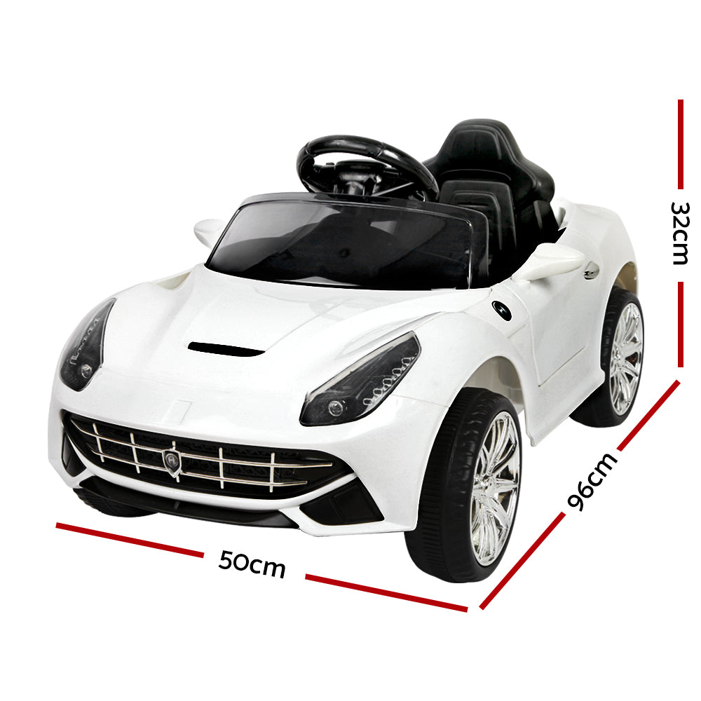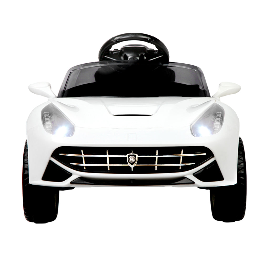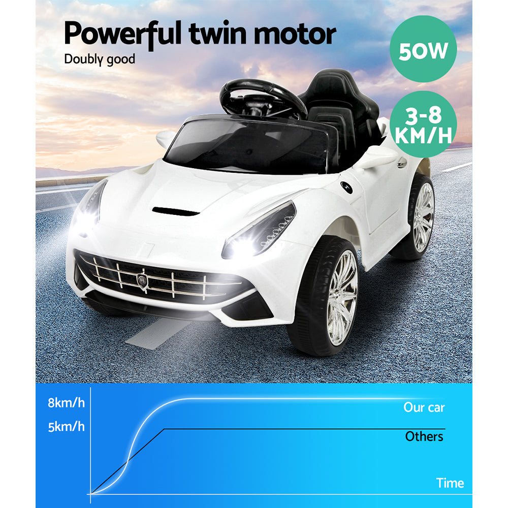 Well, those incredible technology and engineering wouldn’t be found in our F12 Inspired Kids Ride On Car. But then you’ll be glad to know that some of its progressive styling of space-age angles and aerodynamic channels are fully evident with our Kids version of the F12. The swooping lines, stylish bonnet vent and large headlights give our Ride a dynamic stance from any angle. The stunning lacquer finish in Pearl White is absolutely scintillating.