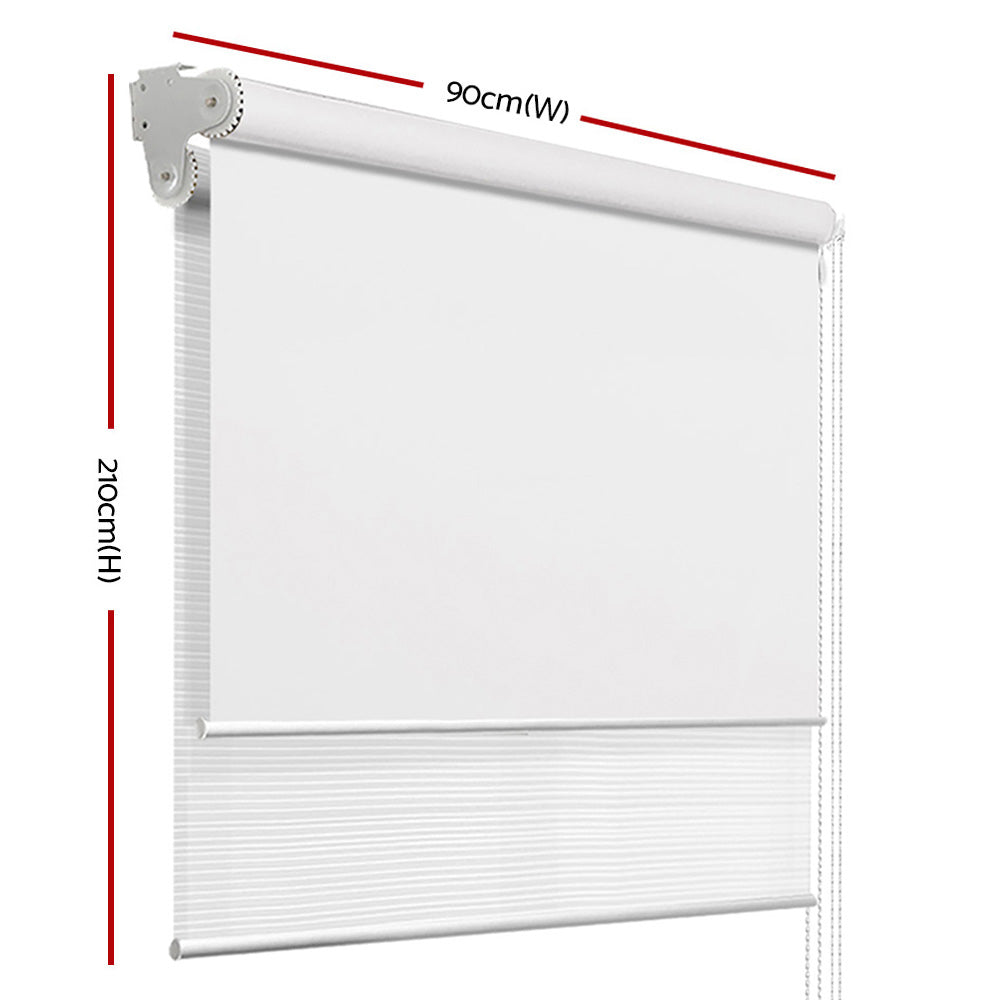 Roller Blinds Blockout Blackout Curtains Window Double Dual Shades 0.9X2.1M WHWH