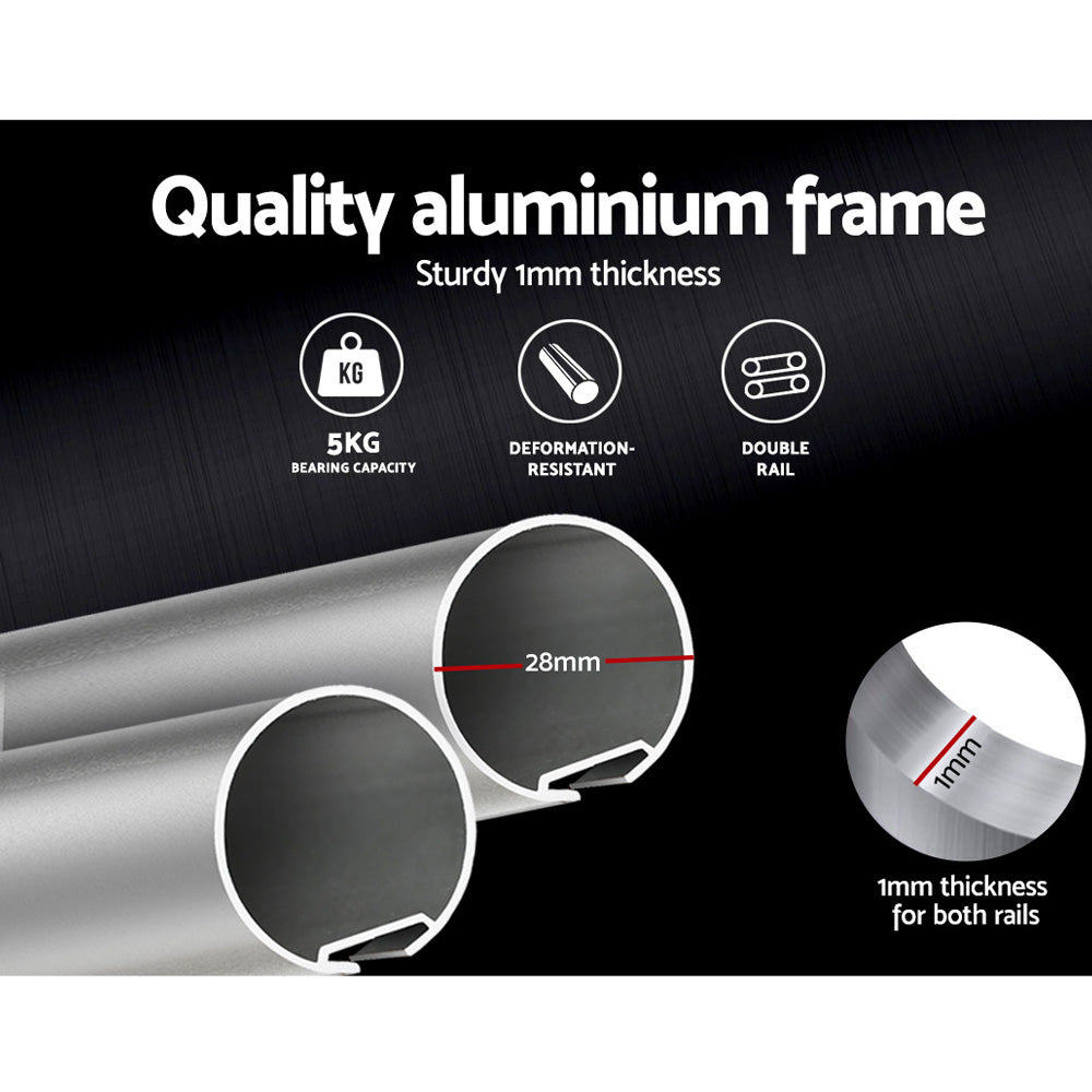 The roller blind operates seamlessly due to its smooth chain drive system and can stay open partway to let in as much or little light as you prefer. It is durably crafted with a sturdy 1mm thick aluminium tube frame, plastic bead chain and dual polyester fabric blind. The 185gsm high-density weave blockout fabric effectively blocks out the heat and sunlight to offer complete privacy and peaceful slumbers, while the thinner 75gsm sheer sunscreen fabric lets through diffused light and provides some privacy. Easy to install, the blind is suitable for various types of walls and windows, and the contemporary design and colour will update any room or space beautifully. Most importantly, a P clip is included to make the blind child-safe, to safely secure the chain and prevent any accidents.