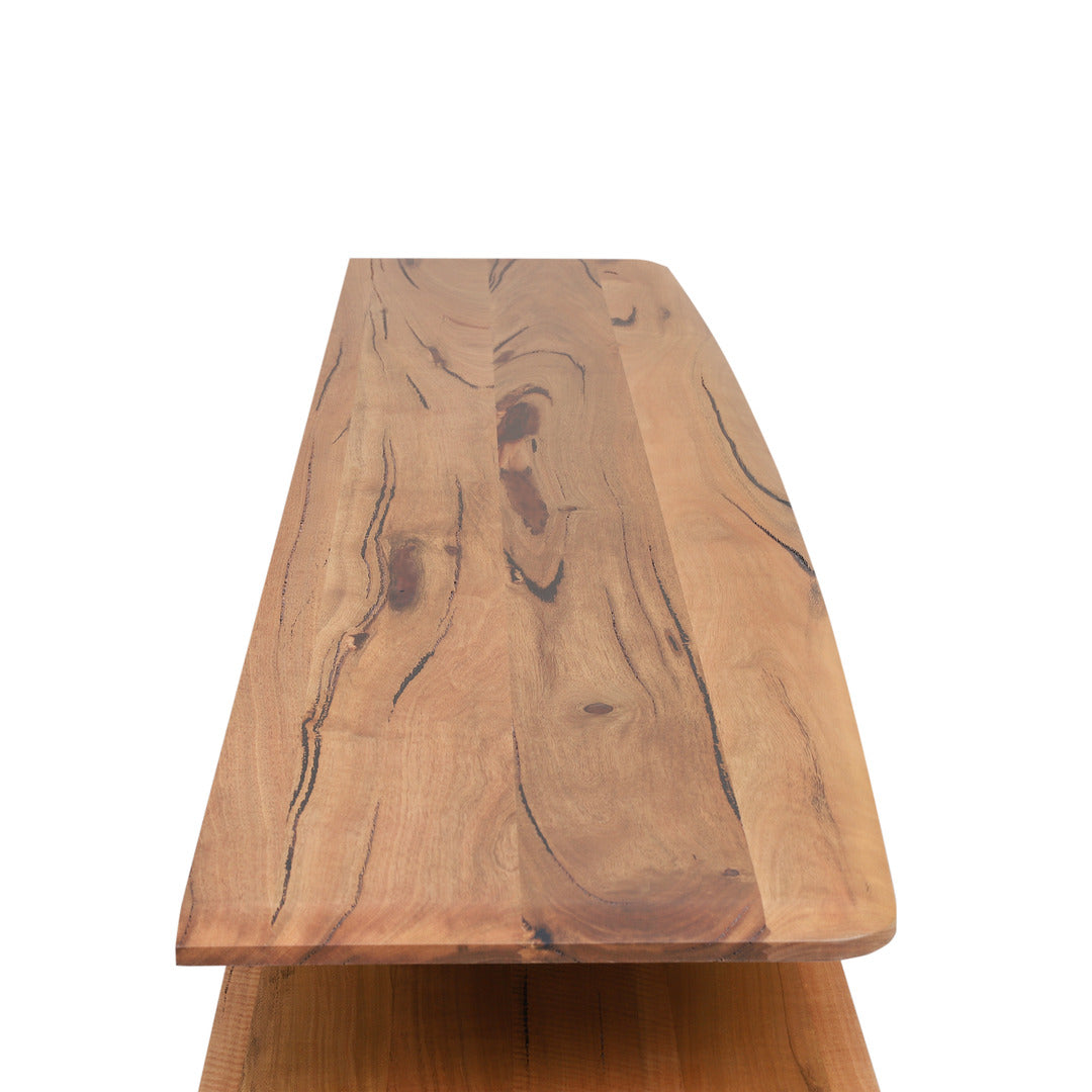 Experience the raw beauty of Australian solid marri wood, characterized by its unique grains, cracks and splits, lending each piece a unique charm. To elevate the finish to a high-grade standard, our artisans utilize a premium clear epoxy resin, meticulously applied to fill larger knots and grain-related imperfections, resulting in an exceptionally smooth surface.