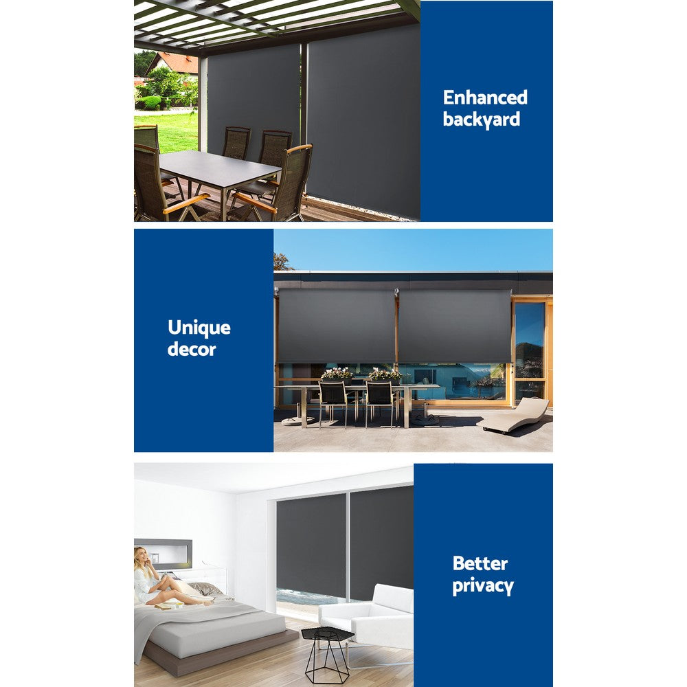Set of 2 Instahut Outdoor Blinds Roll Down Awning Straight Drop Patio 3.0X2.5M