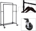 EASY TO MOVE OR STAY 4 universal PP wheels with 2 locking brakes ensure garment rack can travel from one location to another smoothly and stay put