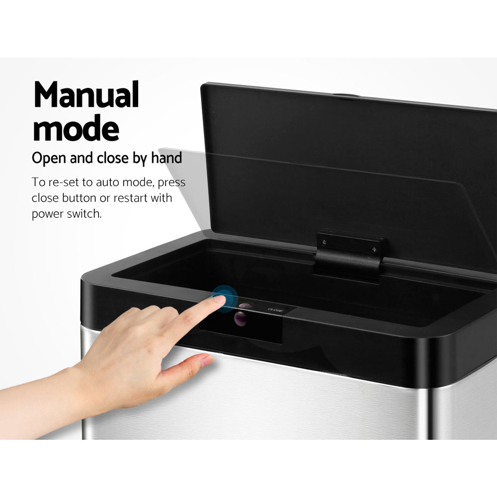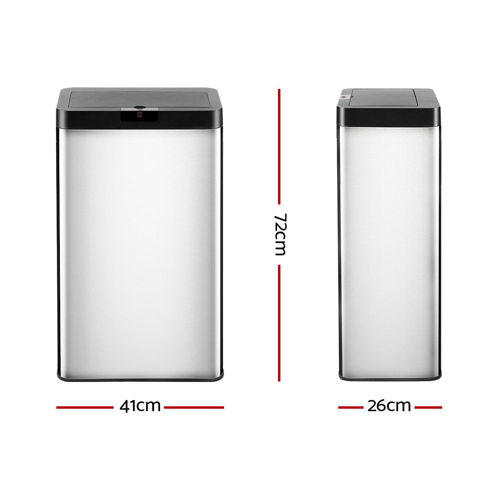 Stainless Steel Sensor Bin Rubbish Trash Bins Motion Automatic Touch Free 70L