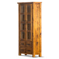 Teasel Display Unit Glass Door Bookcase Solid Pine Timber Wood - Rustic Oak