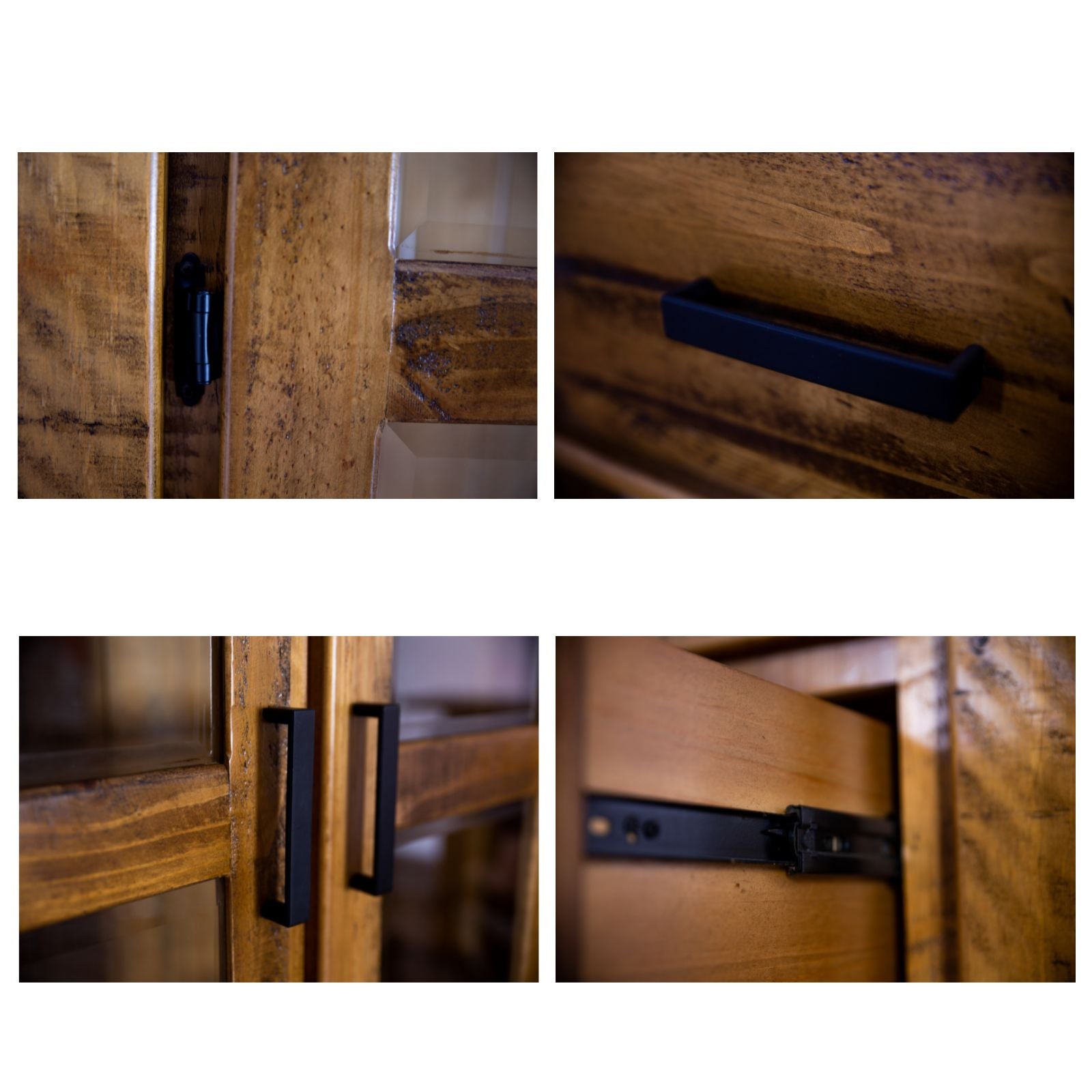- Doors and drawers with strong metal handles