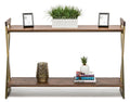 Add great elegance and style your Home with the timeless design of this stunning Wooden Entryway Hallway Console Table with Shelves. It effortlessly blends Rustic and Contemporary with the combination of Iron Legs and a smooth Wood Top. Further, with the added functionality of the bottom Shelf you will have more Storage than before. With the amazing French Brass finish on the legs and a stunning natural texture on the Wood, this Table fuses together two styles that will compliment the Décor of any Home.